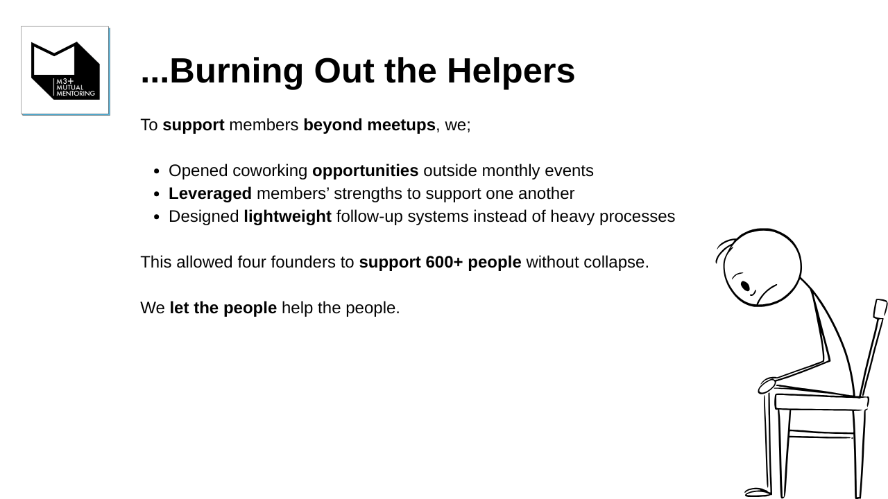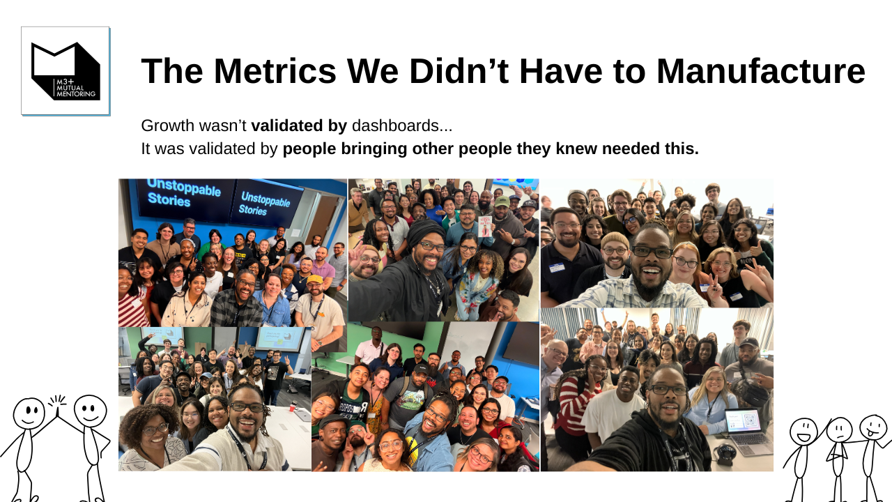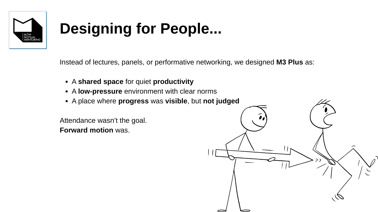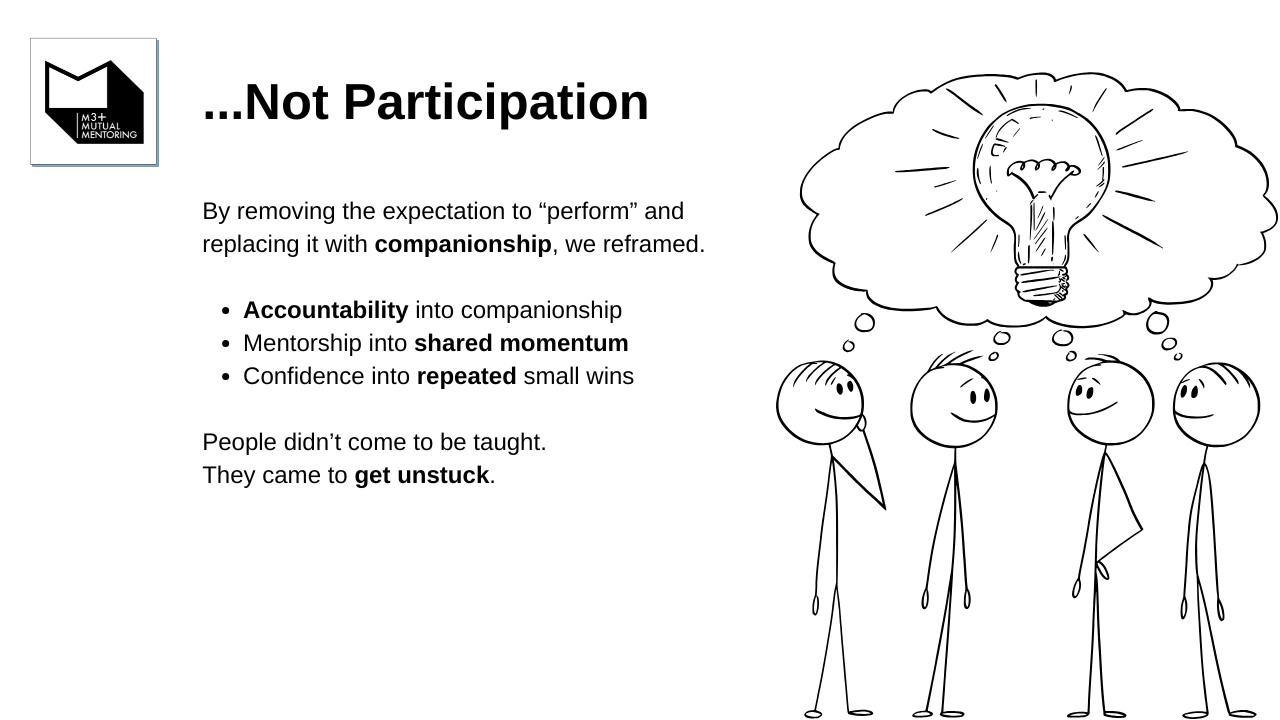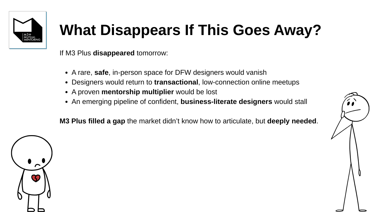 M3+ provides a safe, collaborative space for UX professionals to build portfolios, confidence, and careers. Through co-mentoring sessions, skill-sharing, and authentic connection, members overcome isolation and imposter syndrome. We've helped our community members land roles, elevate their design thinking, and rediscover the joy in their creative journey.